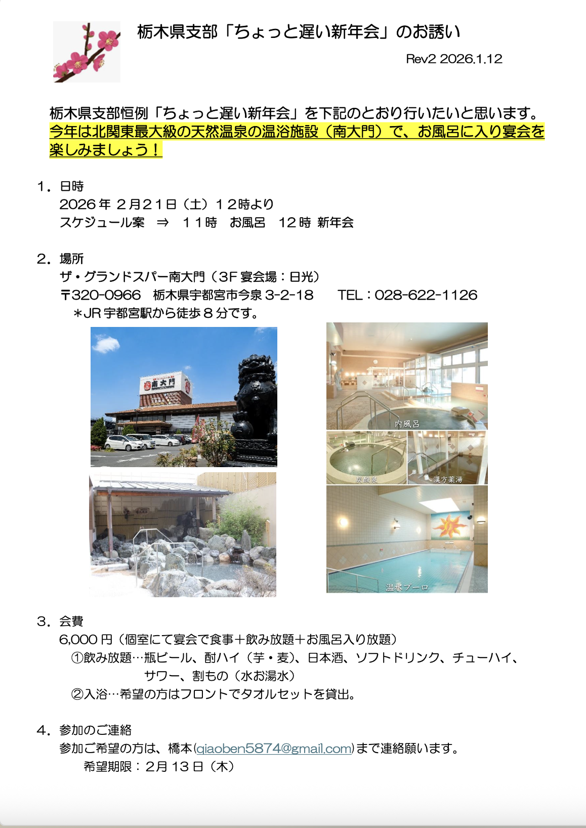 新年あけましておめでとうございます 本年も支部活動にご参加いただきますようお願い申し上げます